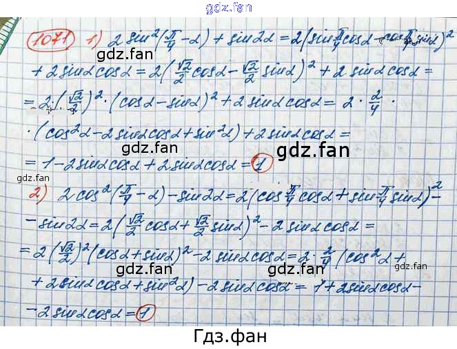 Проверка домашнего задания всегда занимает большое количество времени. На помощь приходит ГДЗ фан по Алгебре десятого класса. Здесь собраны популярные ответы на 1071 (стр. 305) Алгебра и начала математического анализа 10 класс Базовый и углубленный уровни Колягин Ю.М.