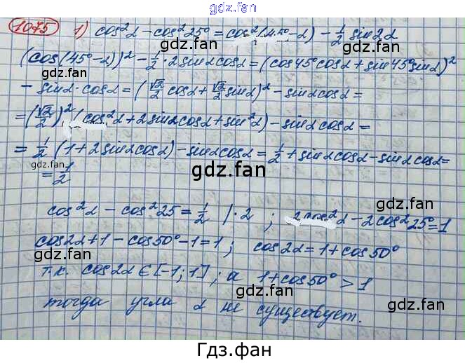 Проверка домашнего задания всегда занимает большое количество времени. На помощь приходит ГДЗ фан по Алгебре десятого класса. Здесь собраны популярные ответы на 1075 (стр. 305) Алгебра и начала математического анализа 10 класс Базовый и углубленный уровни Колягин Ю.М.
