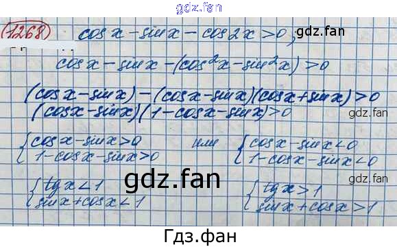 Проверка домашнего задания всегда занимает большое количество времени. На помощь приходит ГДЗ фан по Алгебре десятого класса. Здесь собраны популярные ответы на 1268 (стр. 354) Алгебра и начала математического анализа 10 класс Базовый и углубленный уровни Колягин Ю.М.