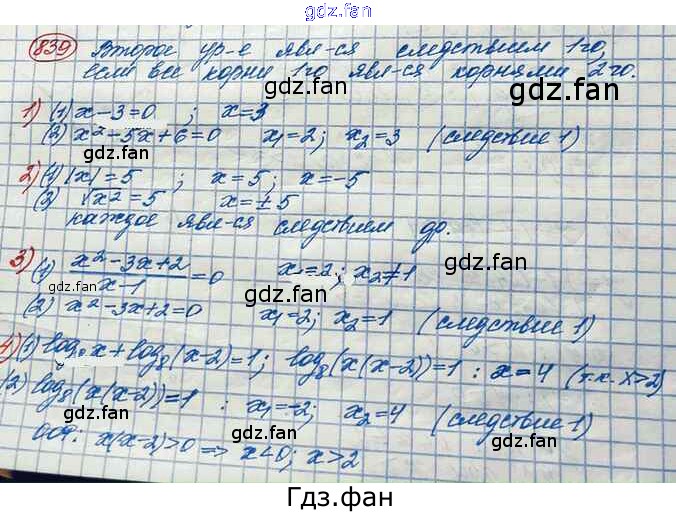 Проверка домашнего задания всегда занимает большое количество времени. На помощь приходит ГДЗ фан по Алгебре десятого класса. Здесь собраны популярные ответы на 839 (стр. 259) Алгебра и начала математического анализа 10 класс Базовый и углубленный уровни Колягин Ю.М.