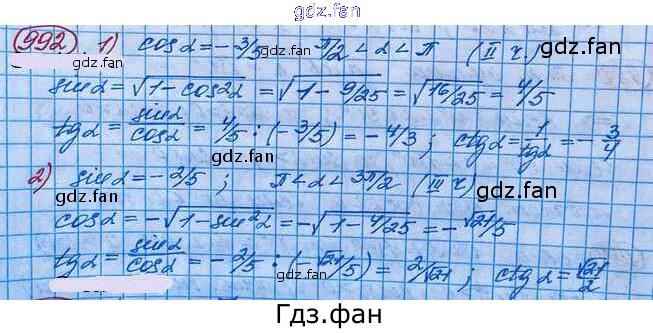 Проверка домашнего задания всегда занимает большое количество времени. На помощь приходит ГДЗ фан по Алгебре десятого класса. Здесь собраны популярные ответы на 992 (стр. 289) Алгебра и начала математического анализа 10 класс Базовый и углубленный уровни Колягин Ю.М.