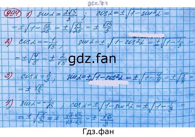Проверка домашнего задания всегда занимает большое количество времени. На помощь приходит ГДЗ фан по Алгебре десятого класса. Здесь собраны популярные ответы на 994 (стр. 290) Алгебра и начала математического анализа 10 класс Базовый и углубленный уровни Колягин Ю.М.