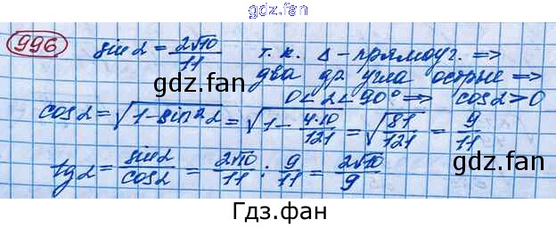 Проверка домашнего задания всегда занимает большое количество времени. На помощь приходит ГДЗ фан по Алгебре десятого класса. Здесь собраны популярные ответы на 996 (стр. 290) Алгебра и начала математического анализа 10 класс Базовый и углубленный уровни Колягин Ю.М.