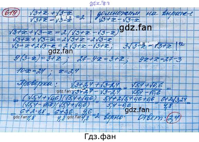 Проверка домашнего задания всегда занимает большое количество времени. На помощь приходит ГДЗ фан по Алгебре десятого класса. Здесь собраны популярные ответы на 619 (стр. 207) Алгебра и начала математического анализа 10 класс Базовый и углубленный уровни Колягин Ю.М.