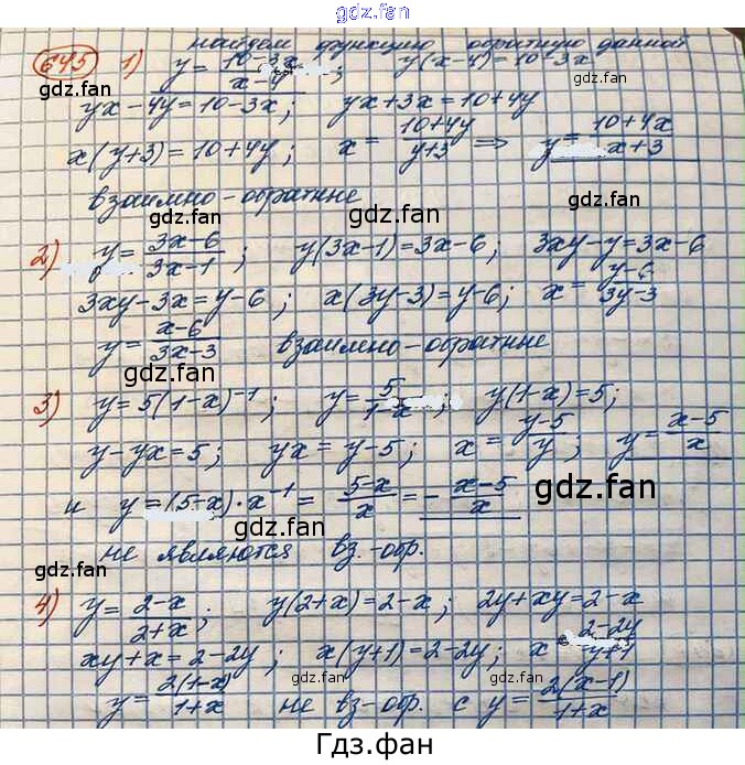 Проверка домашнего задания всегда занимает большое количество времени. На помощь приходит ГДЗ фан по Алгебре десятого класса. Здесь собраны популярные ответы на 645 (стр. 215) Алгебра и начала математического анализа 10 класс Базовый и углубленный уровни Колягин Ю.М.