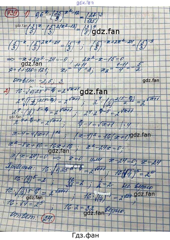 Проверка домашнего задания всегда занимает большое количество времени. На помощь приходит ГДЗ фан по Алгебре десятого класса. Здесь собраны популярные ответы на 739 (стр. 237) Алгебра и начала математического анализа 10 класс Базовый и углубленный уровни Колягин Ю.М.