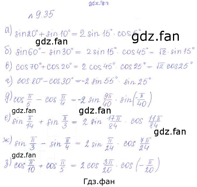 Проверка домашнего задания всегда занимает большое количество времени. На помощь приходит ГДЗ фан по Алгебре десятого класса. Здесь собраны популярные ответы на 35 (стр. 267) Алгебра и начала математического анализа 10 класс Базовый и углубленный уровни Никольский С.М.