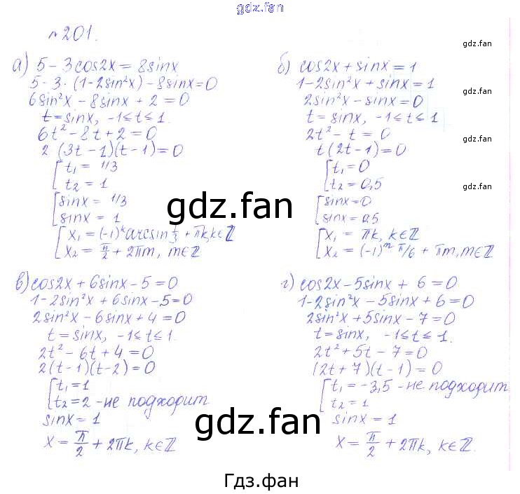 Проверка домашнего задания всегда занимает большое количество времени. На помощь приходит ГДЗ фан по Алгебре десятого класса. Здесь собраны популярные ответы на 201 (стр. 386) Алгебра и начала математического анализа 10 класс Базовый и углубленный уровни Никольский С.М.