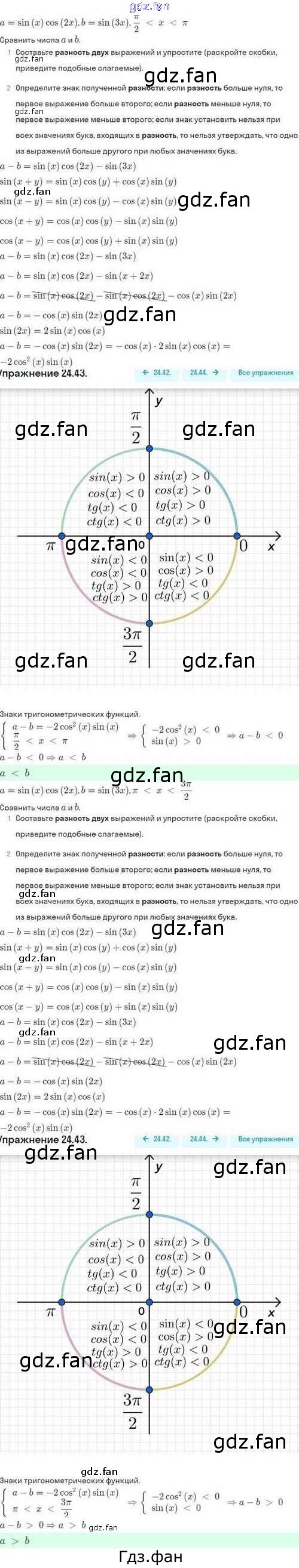 Проверка домашнего задания всегда занимает большое количество времени. На помощь приходит ГДЗ фан по Алгебре десятого класса. Здесь собраны популярные ответы на 24.43 (стр. 156) Алгебра и начала математического анализа 10 класс задачник Мордкович А.Г.