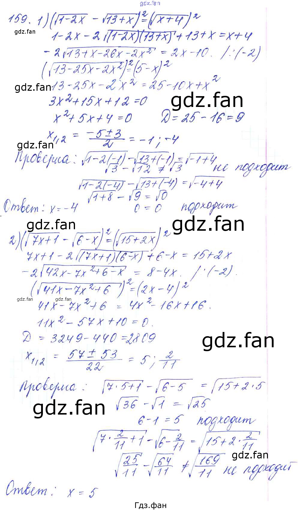 Проверка домашнего задания всегда занимает большое количество времени. На помощь приходит ГДЗ фан по Алгебре десятого класса. Здесь собраны популярные ответы на 159 (стр. 63) Алгебра и начала математического анализа 10-11 класс Базовый и углубленный уровни Алимов Ш.А.