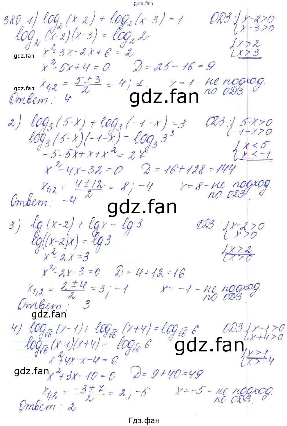 Проверка домашнего задания всегда занимает большое количество времени. На помощь приходит ГДЗ фан по Алгебре десятого класса. Здесь собраны популярные ответы на 380 (стр. 114) Алгебра и начала математического анализа 10-11 класс Базовый и углубленный уровни Алимов Ш.А.