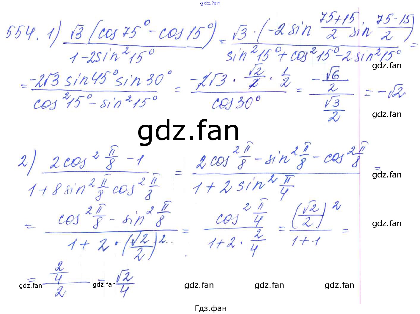 Проверка домашнего задания всегда занимает большое количество времени. На помощь приходит ГДЗ фан по Алгебре десятого класса. Здесь собраны популярные ответы на 554 (стр. 165) Алгебра и начала математического анализа 10-11 класс Базовый и углубленный уровни Алимов Ш.А.