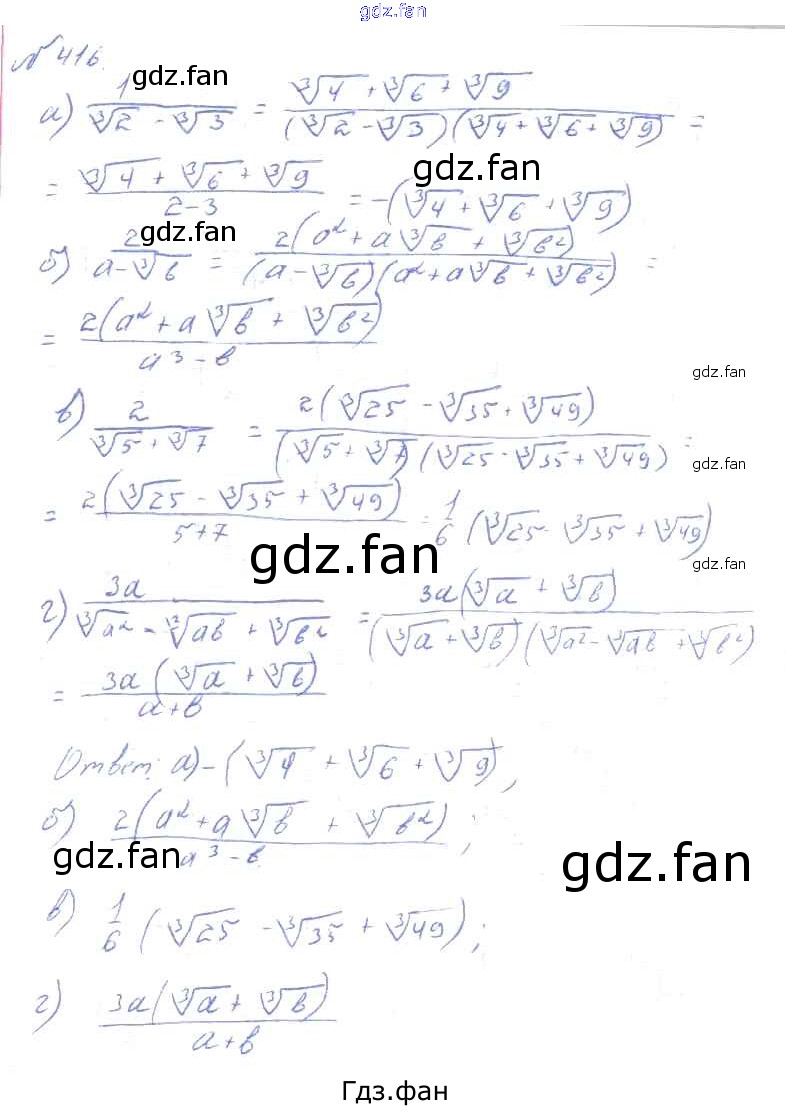 Проверка домашнего задания всегда занимает большое количество времени. На помощь приходит ГДЗ фан по Алгебре десятого класса. Здесь собраны популярные ответы на 416 (стр. 214) Алгебра и начала математического анализа 10-11 класс Колмогоров А.Н.