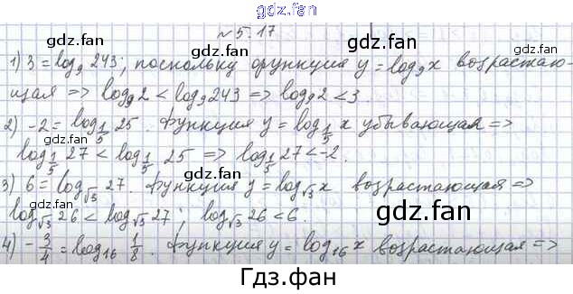 Проверка домашнего задания всегда занимает большое количество времени. На помощь приходит ГДЗ фан по Алгебре одиннадцатого класса. Здесь собраны популярные ответы на 5.17 (стр. 42) Математика: алгебра и начала математического анализа 11 класс Мерзляк А.Г.