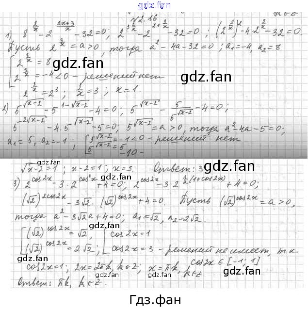 Проверка домашнего задания всегда занимает большое количество времени. На помощь приходит ГДЗ фан по Алгебре одиннадцатого класса. Здесь собраны популярные ответы на 2.16 (стр. 22) Математика: алгебра и начала математического анализа 11 класс Мерзляк А.Г.