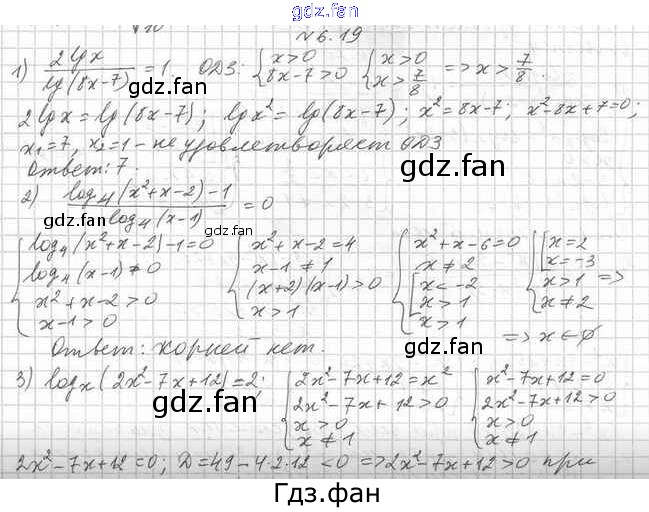Проверка домашнего задания всегда занимает большое количество времени. На помощь приходит ГДЗ фан по Алгебре одиннадцатого класса. Здесь собраны популярные ответы на 6.19 (стр. 57) Математика: алгебра и начала математического анализа 11 класс Мерзляк А.Г.