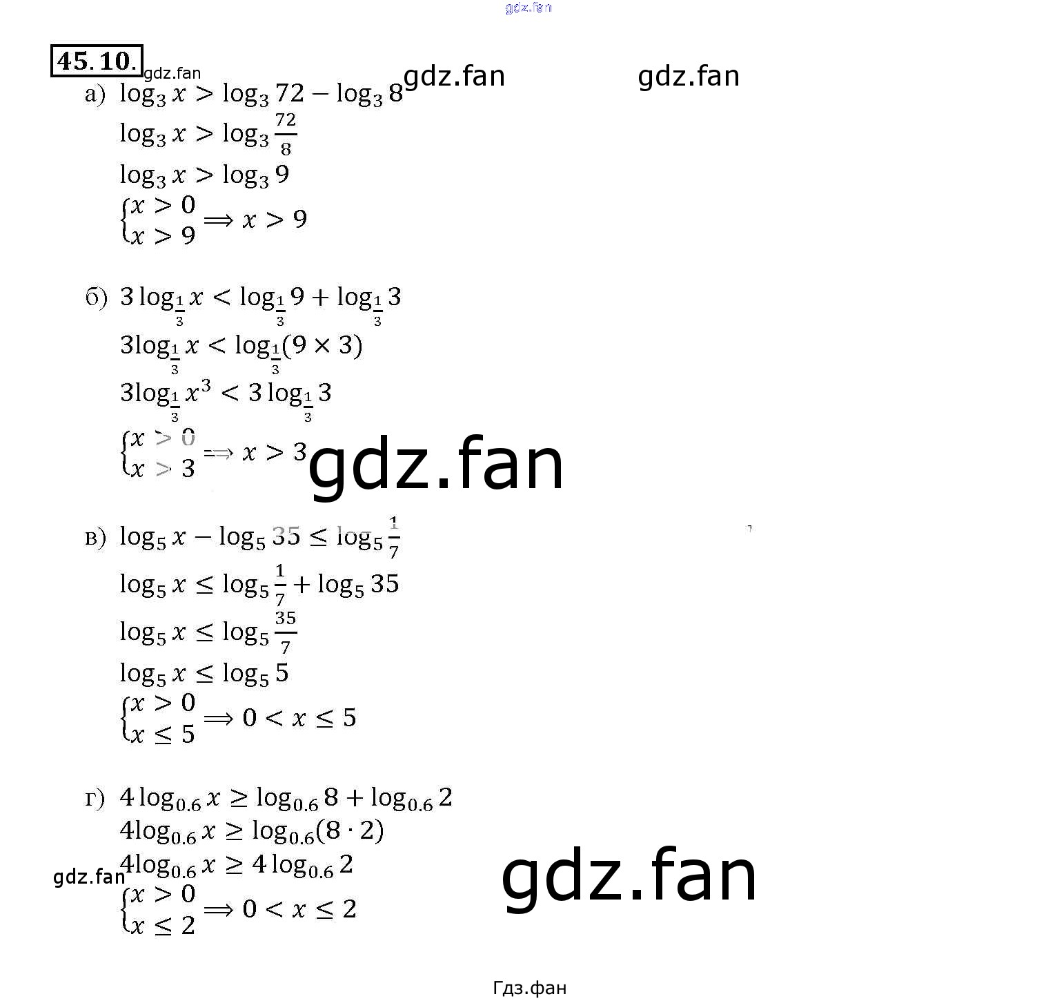 Проверка домашнего задания всегда занимает большое количество времени. На помощь приходит ГДЗ фан по Алгебре десятого класса. Здесь собраны популярные ответы на 45. 10 (стр. 155) Алгебра 10-11 класс Задачник Базовый уровень 2 часть Мордкович А.Г.