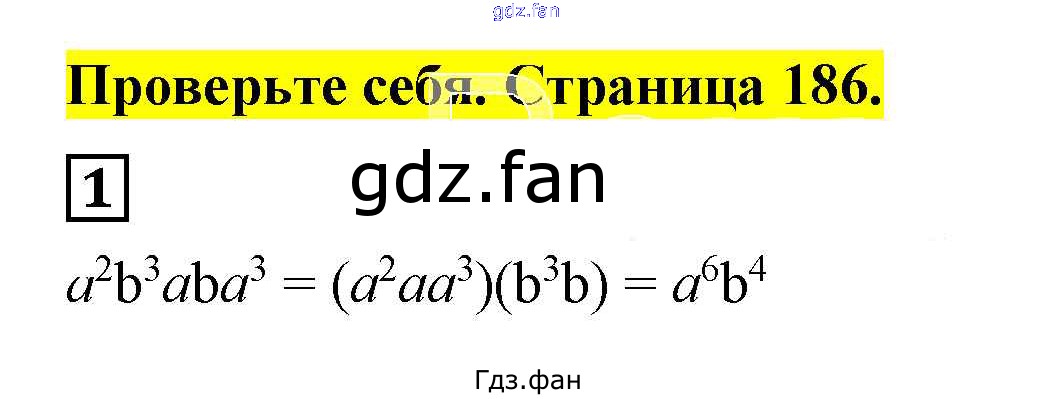 Проверка домашнего задания всегда занимает большое количество времени. На помощь приходит ГДЗ фан по Алгебре седьмого класса. Здесь собраны популярные ответы на 1 (стр. 186) Алгебра 7 класс Дорофеев Г.В.