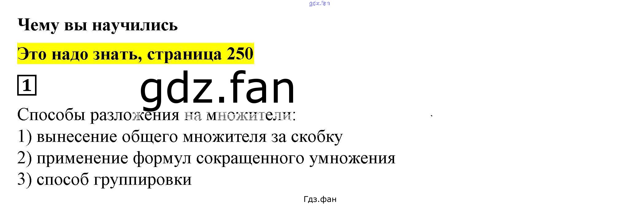 Проверка домашнего задания всегда занимает большое количество времени. На помощь приходит ГДЗ фан по Алгебре седьмого класса. Здесь собраны популярные ответы на 1 (стр. 250) Алгебра 7 класс Дорофеев Г.В.