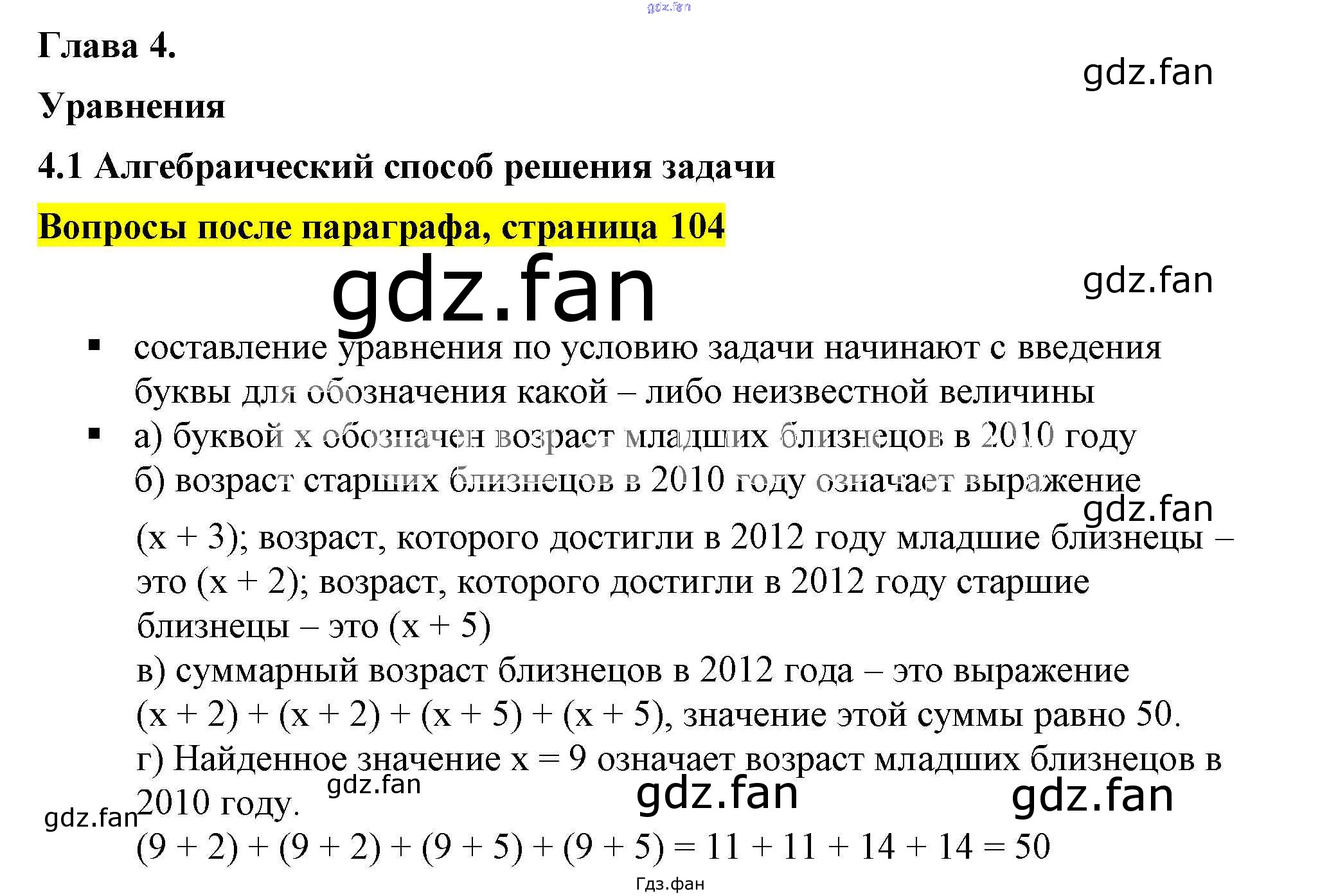 Проверка домашнего задания всегда занимает большое количество времени. На помощь приходит ГДЗ фан по Алгебре седьмого класса. Здесь собраны популярные ответы на 4.1 (стр. 104) Алгебра 7 класс Дорофеев Г.В.
