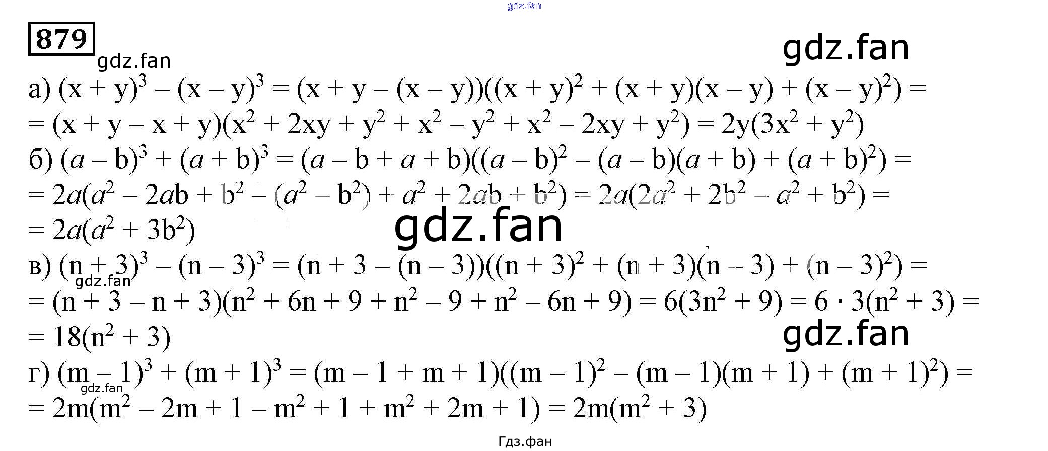 Проверка домашнего задания всегда занимает большое количество времени. На помощь приходит ГДЗ фан по Алгебре седьмого класса. Здесь собраны популярные ответы на 879 (стр. 239) Алгебра 7 класс Дорофеев Г.В.