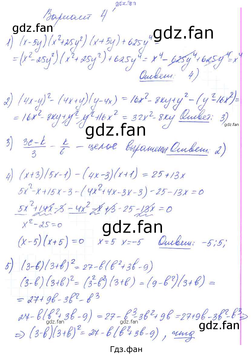 Проверка домашнего задания всегда занимает большое количество времени. На помощь приходит ГДЗ фан по Алгебре седьмого класса. Здесь собраны популярные ответы на 4 (стр. 106) Алгебра 7 класс самостоятельные и контрольные работы Глазков Ю.А. (к уч.Макарычева)