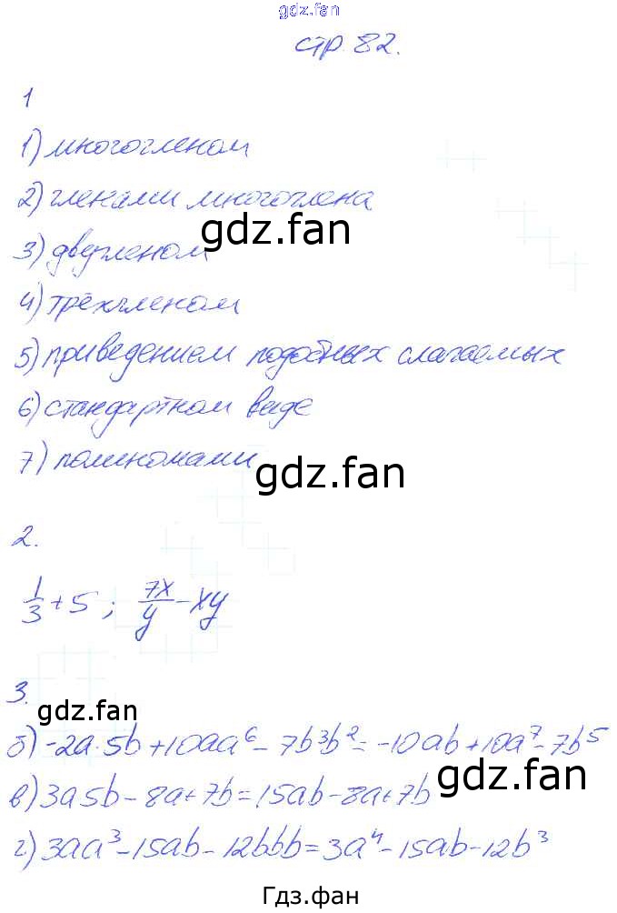 Проверка домашнего задания всегда занимает большое количество времени. На помощь приходит ГДЗ фан по Алгебре седьмого класса. Здесь собраны популярные ответы на 82 (задание 1, 2, 3) Алгебра 7 класс рабочая тетрадь Ключникова Е.М.