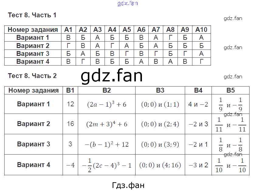 Проверка домашнего задания всегда занимает большое количество времени. На помощь приходит ГДЗ фан по Алгебре седьмого класса. Здесь собраны популярные ответы на Тест №8 (стр. 109-120) Алгебра 7 класс тесты Ключникова Е.М. (к уч. Мордковича)
