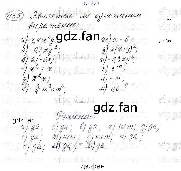 Проверка домашнего задания всегда занимает большое количество времени. На помощь приходит ГДЗ фан по Алгебре седьмого класса. Здесь собраны популярные ответы на 455 (стр. 109) Алгебра 7 класс Макарычев Ю.Н.