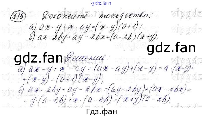 Проверка домашнего задания всегда занимает большое количество времени. На помощь приходит ГДЗ фан по Алгебре седьмого класса. Здесь собраны популярные ответы на 715 (стр. 151) Алгебра 7 класс Макарычев Ю.Н.