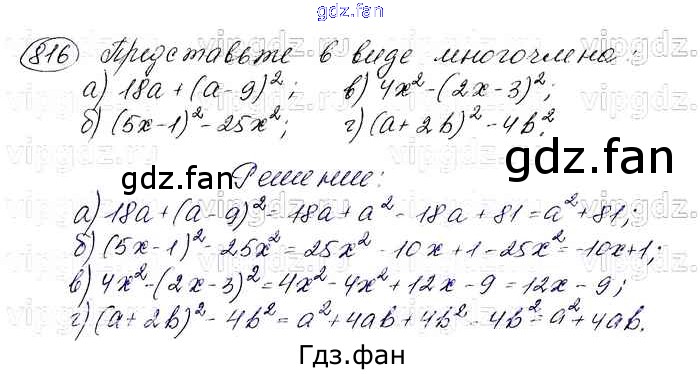 Проверка домашнего задания всегда занимает большое количество времени. На помощь приходит ГДЗ фан по Алгебре седьмого класса. Здесь собраны популярные ответы на 816 (стр. 168) Алгебра 7 класс Макарычев Ю.Н.