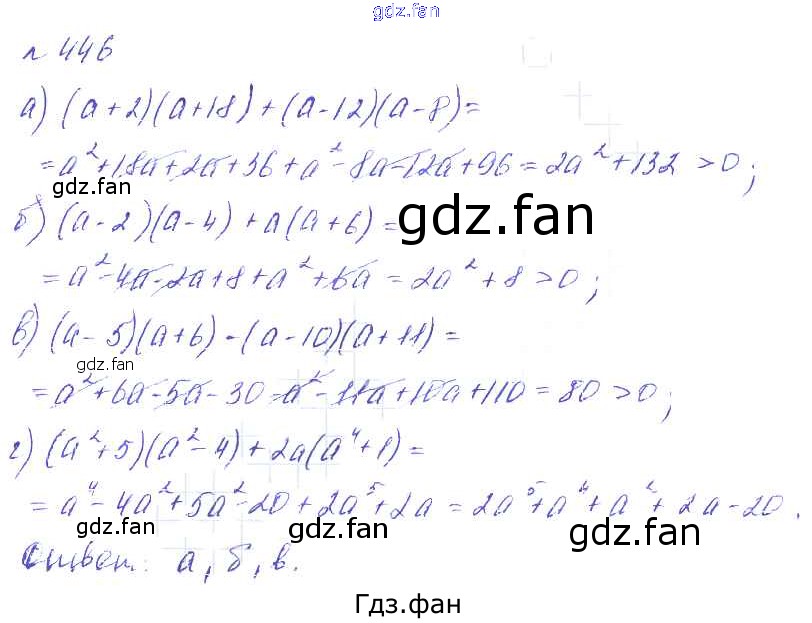 Проверка домашнего задания всегда занимает большое количество времени. На помощь приходит ГДЗ фан по Алгебре седьмого класса. Здесь собраны популярные ответы на 446 (стр. 91) Алгебра 7 класс Макарычев Ю.Н.