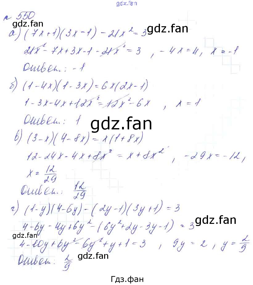 Проверка домашнего задания всегда занимает большое количество времени. На помощь приходит ГДЗ фан по Алгебре седьмого класса. Здесь собраны популярные ответы на 550 (стр. 113) Алгебра 7 класс Макарычев Ю.Н.
