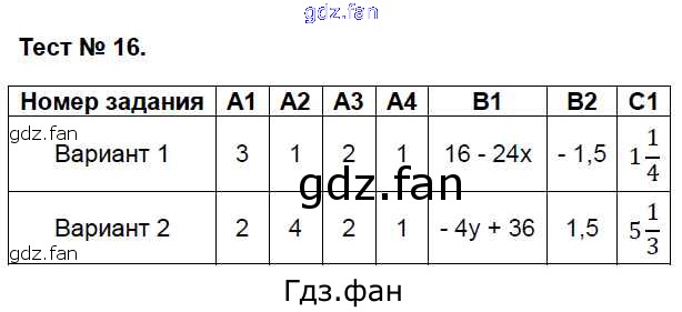 Проверка домашнего задания всегда занимает большое количество времени. На помощь приходит ГДЗ фан по Алгебре седьмого класса. Здесь собраны популярные ответы на Тест №16 (стр. 42-43) Алгебра 7 класс контрольно-измерительные материалы Мартышова Л.И.