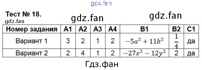 Проверка домашнего задания всегда занимает большое количество времени. На помощь приходит ГДЗ фан по Алгебре седьмого класса. Здесь собраны популярные ответы на Тест №18 (стр. 46-47) Алгебра 7 класс контрольно-измерительные материалы Мартышова Л.И.