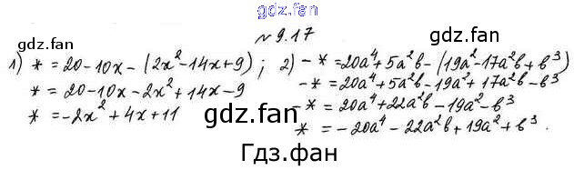 Проверка домашнего задания всегда занимает большое количество времени. На помощь приходит ГДЗ фан по Алгебре седьмого класса. Здесь собраны популярные ответы на 9.17 (стр. 61) Алгебра 7 класс Мерзляк А.Г.