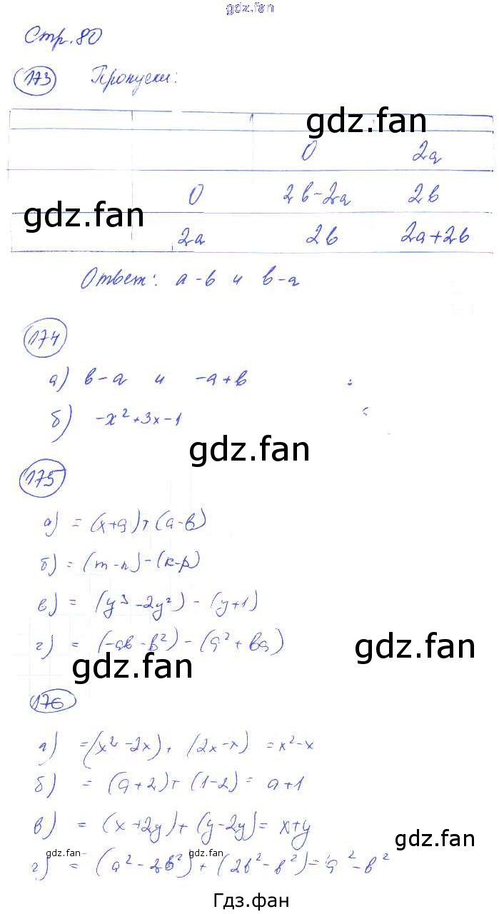Проверка домашнего задания всегда занимает большое количество времени. На помощь приходит ГДЗ фан по Алгебре седьмого класса. Здесь собраны популярные ответы на 80 (задание 173, 174, 175, 176) Алгебра 7 класс рабочая тетрадь Минаева С.С.