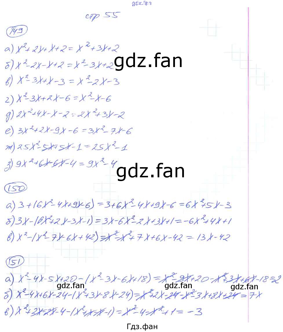 Проверка домашнего задания всегда занимает большое количество времени. На помощь приходит ГДЗ фан по Алгебре седьмого класса. Здесь собраны популярные ответы на 55 (№ 149, 150, 151) Алгебра 7 класс рабочая тетрадь Потапов М.К.
