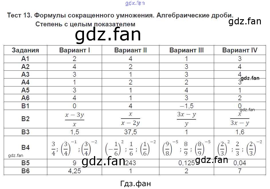 Проверка домашнего задания всегда занимает большое количество времени. На помощь приходит ГДЗ фан по Алгебре седьмого класса. Здесь собраны популярные ответы на Тест №13 (стр. 106-113) Алгебра 7 класс тесты Журавлев С.Г.
