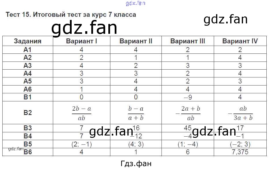 Проверка домашнего задания всегда занимает большое количество времени. На помощь приходит ГДЗ фан по Алгебре седьмого класса. Здесь собраны популярные ответы на Тест №15 (стр. 123-130) Алгебра 7 класс тесты Журавлев С.Г.