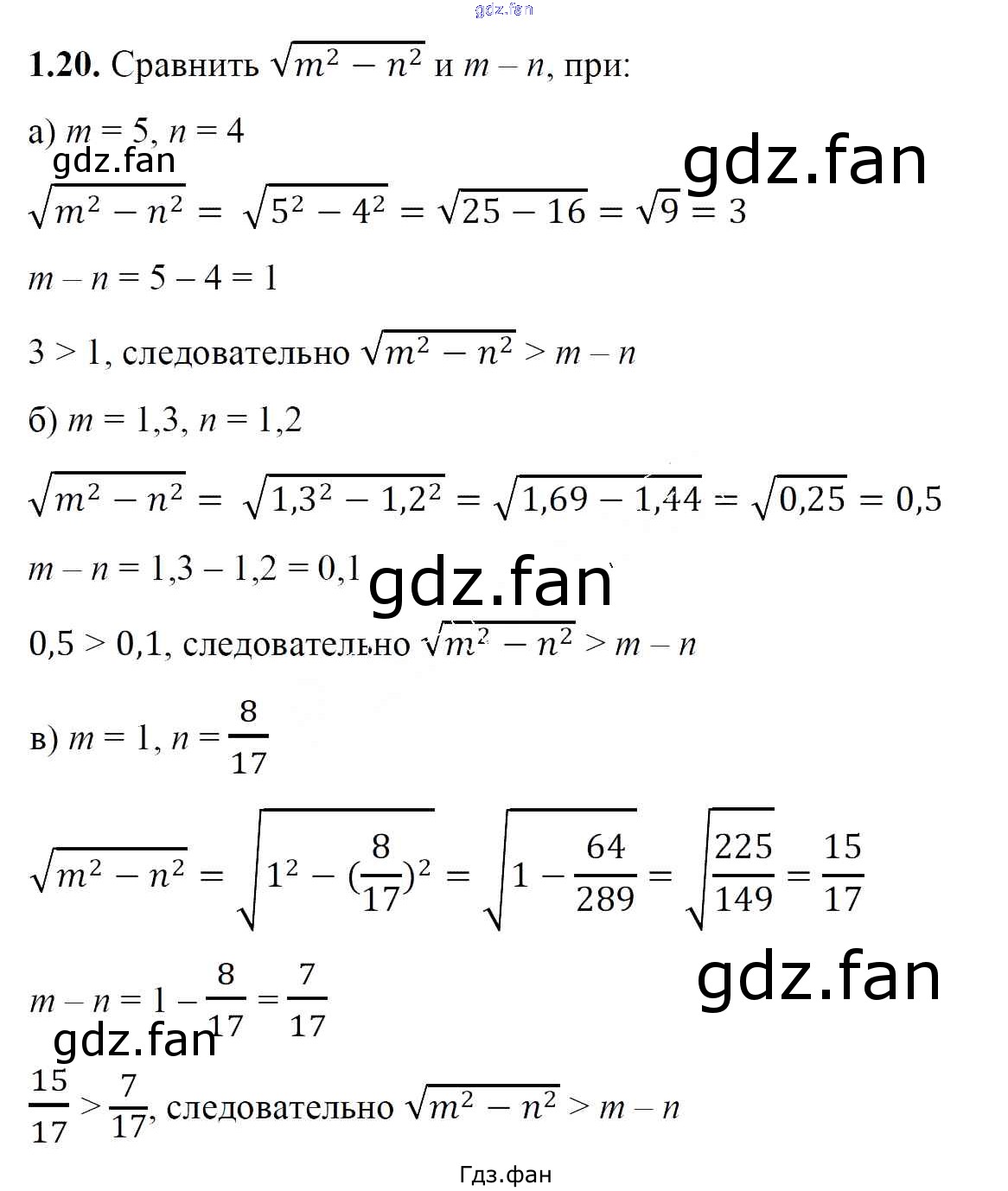 Проверка домашнего задания всегда занимает большое количество времени. На помощь приходит ГДЗ фан по Алгебре восьмого класса. Здесь собраны популярные ответы на 1.20 (стр. 9) Алгебра 8 класс Арефьева И.Г.
