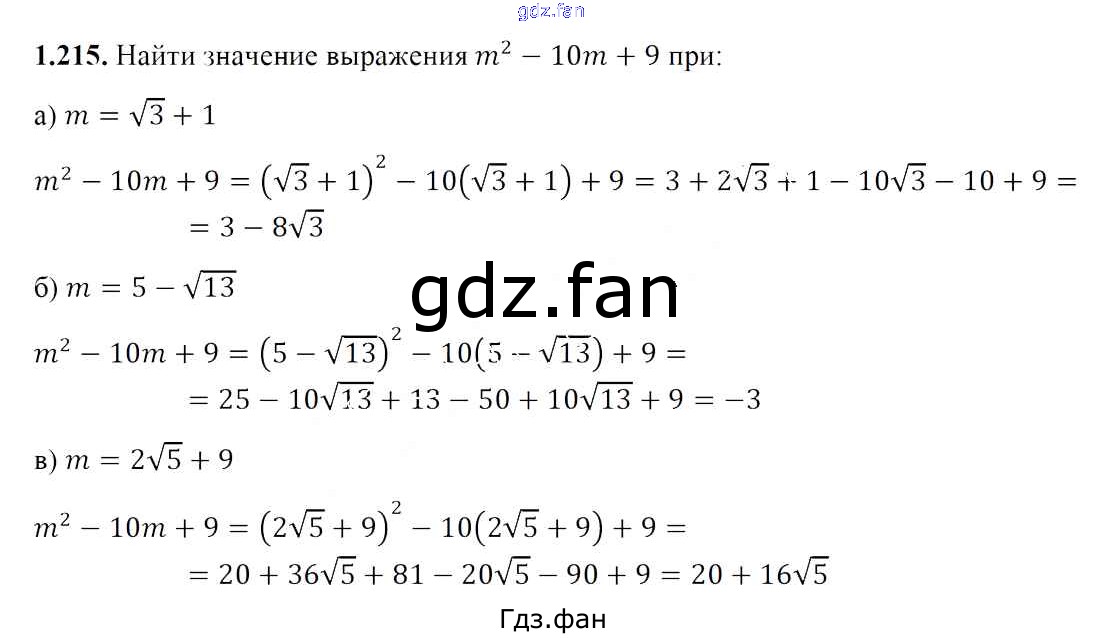 Проверка домашнего задания всегда занимает большое количество времени. На помощь приходит ГДЗ фан по Алгебре восьмого класса. Здесь собраны популярные ответы на 1.215 (стр. 47) Алгебра 8 класс Арефьева И.Г.