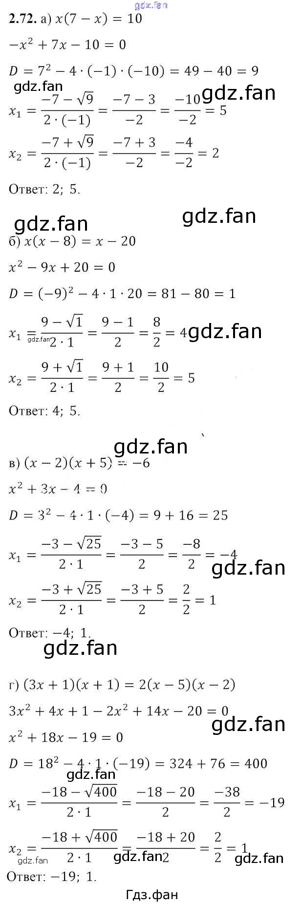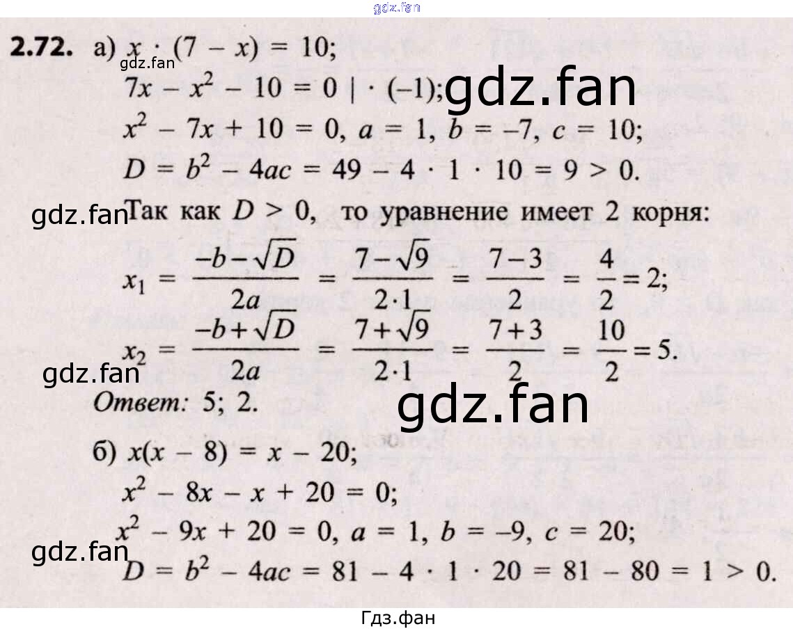 Проверка домашнего задания всегда занимает большое количество времени. На помощь приходит ГДЗ фан по Алгебре восьмого класса. Здесь собраны популярные ответы на 2.72 (стр. 102) Алгебра 8 класс Арефьева И.Г.