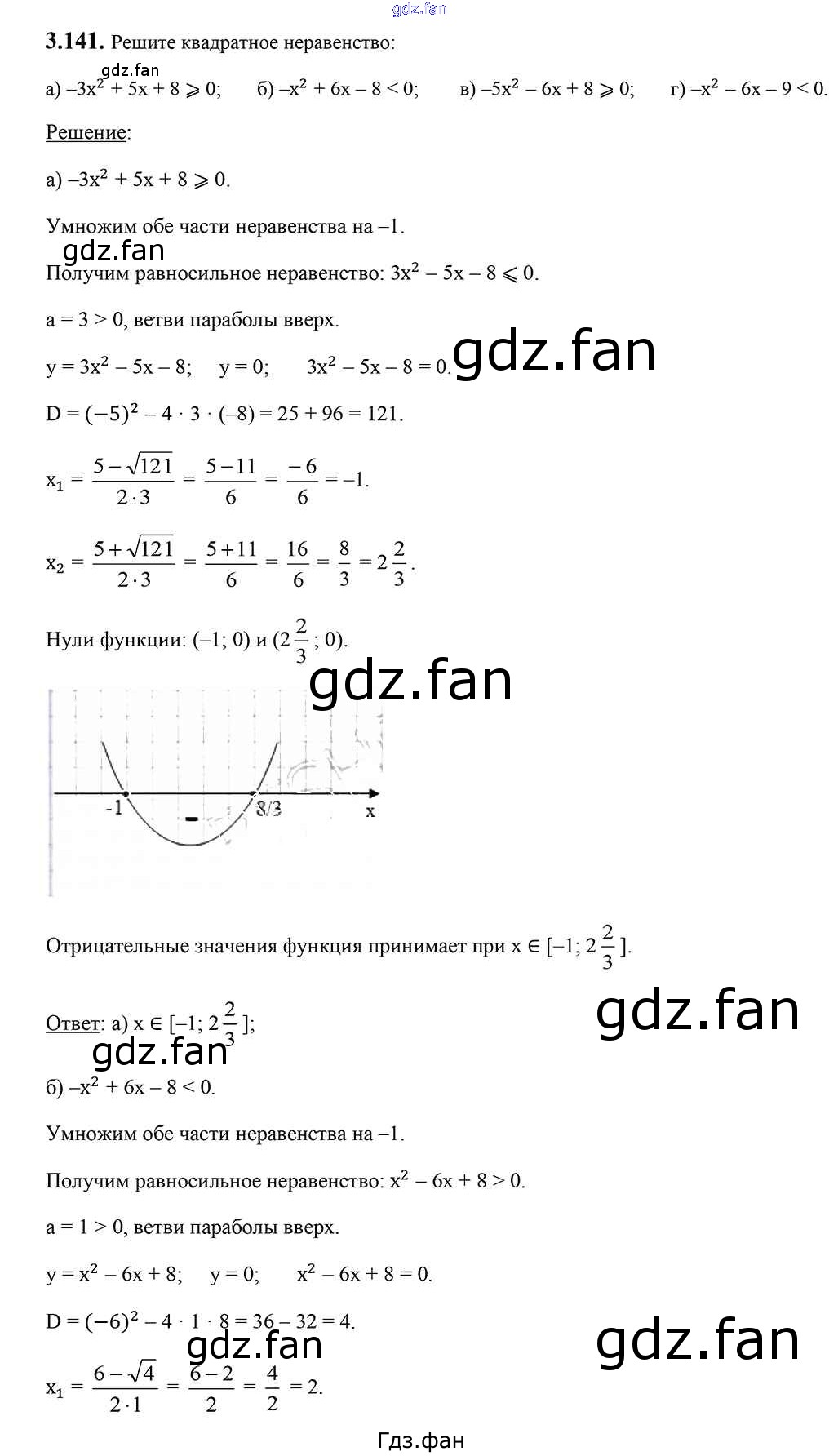 Проверка домашнего задания всегда занимает большое количество времени. На помощь приходит ГДЗ фан по Алгебре восьмого класса. Здесь собраны популярные ответы на 3.141 (стр. 184) Алгебра 8 класс Арефьева И.Г.
