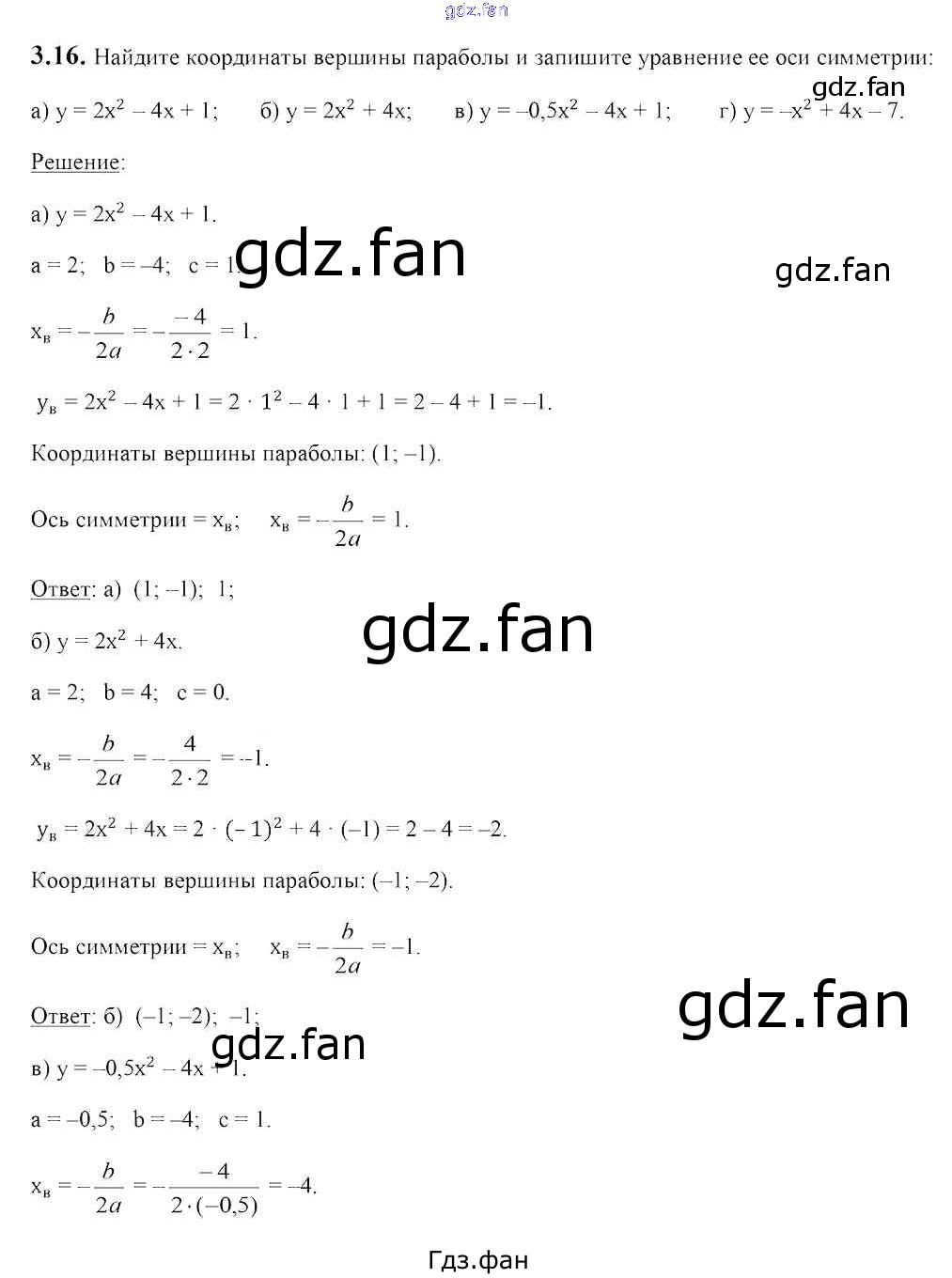 Проверка домашнего задания всегда занимает большое количество времени. На помощь приходит ГДЗ фан по Алгебре восьмого класса. Здесь собраны популярные ответы на 3.16 (стр. 154) Алгебра 8 класс Арефьева И.Г.