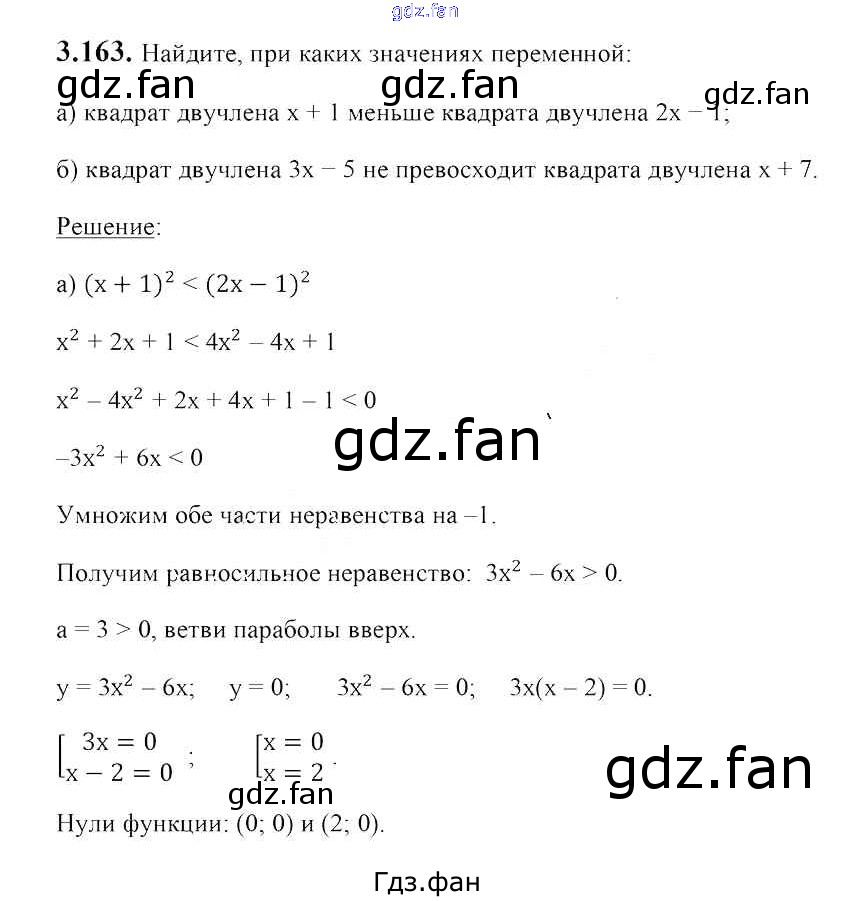 Проверка домашнего задания всегда занимает большое количество времени. На помощь приходит ГДЗ фан по Алгебре восьмого класса. Здесь собраны популярные ответы на 3.163 (стр. 186) Алгебра 8 класс Арефьева И.Г.