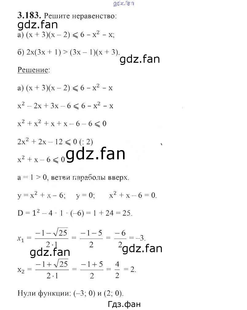 Проверка домашнего задания всегда занимает большое количество времени. На помощь приходит ГДЗ фан по Алгебре восьмого класса. Здесь собраны популярные ответы на 3.183 (стр. 189) Алгебра 8 класс Арефьева И.Г.