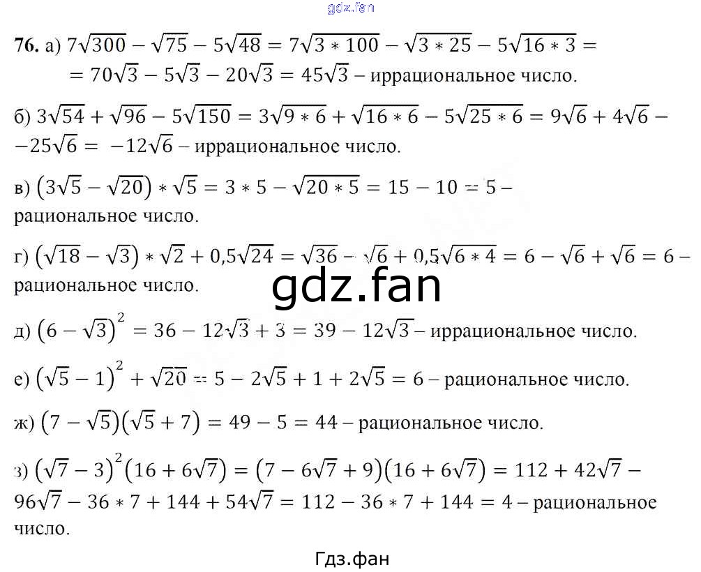Проверка домашнего задания всегда занимает большое количество времени. На помощь приходит ГДЗ фан по Алгебре восьмого класса. Здесь собраны популярные ответы на 76 (стр. 245) Алгебра 8 класс Арефьева И.Г.