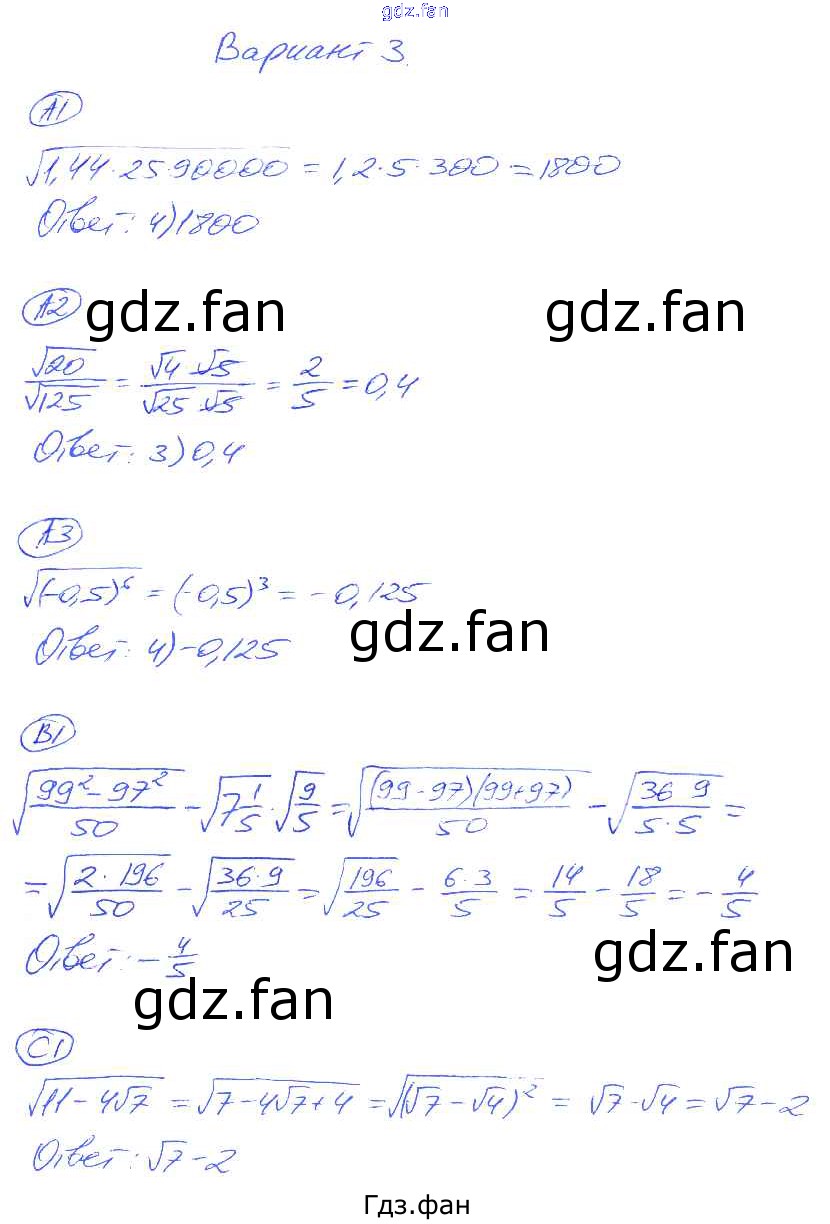 Проверка домашнего задания всегда занимает большое количество времени. На помощь приходит ГДЗ фан по Алгебре восьмого класса. Здесь собраны популярные ответы на 3 (стр. 49) Алгебра 8 класс самостоятельные и контрольные работы Глазков Ю.А. (к уч. Макарычева)