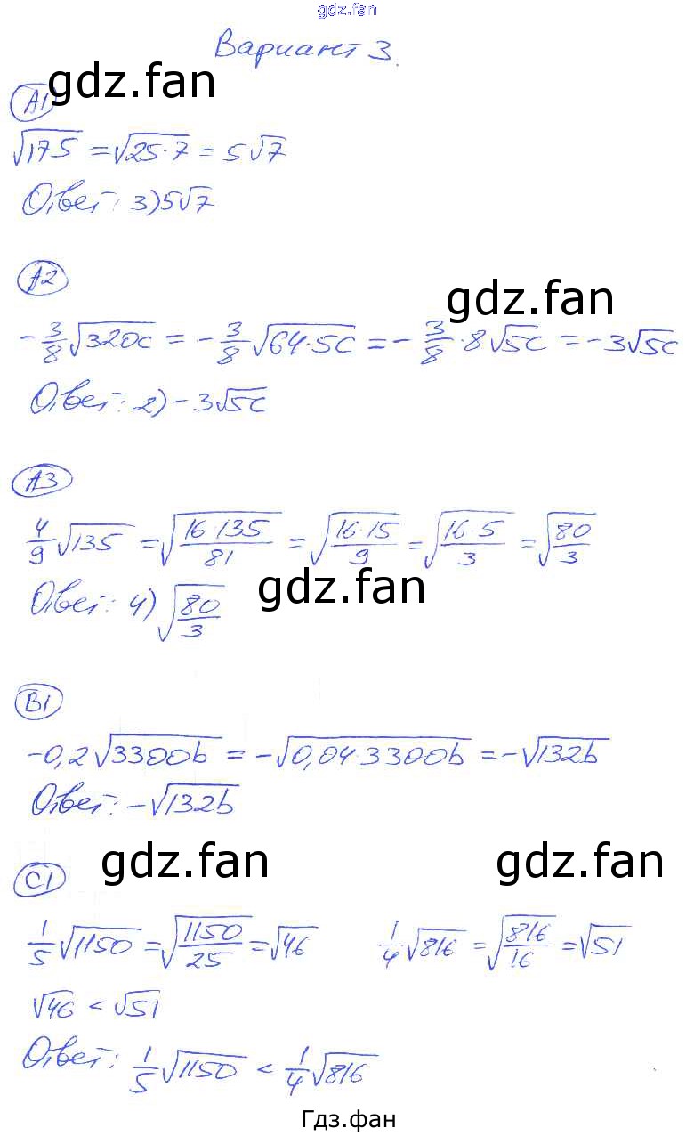 Проверка домашнего задания всегда занимает большое количество времени. На помощь приходит ГДЗ фан по Алгебре восьмого класса. Здесь собраны популярные ответы на 3 (стр. 51) Алгебра 8 класс самостоятельные и контрольные работы Глазков Ю.А. (к уч. Макарычева)